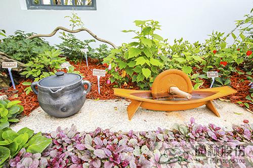 而花境中点缀的药臼、药碾、药葫芦、药笺等中药小品,不但营造出浓浓的中药氛围,而且能够吸引游客看一看、摸一摸,身临其境感受中药文化的博大精深。这样的实景体验,让游客不再是“隔空看花”,而是与园林景观实现了有趣的互动。