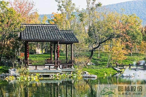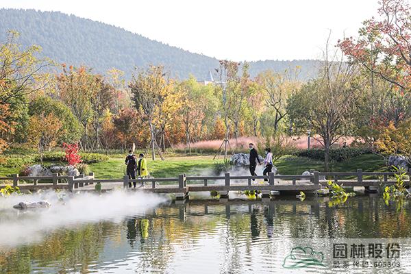 杭州园由西湖风景名胜区花港管理处承建、浙江理工大学方案设计、抖圈绿化股份有限公司深化设计与施工。总体以杭州西湖“景中村”为设计蓝本,以“家在钱塘”为主题,通过浙派园林的造园手法,营造了“竹隐”“云舍”“湖居”“问茶”“寻香”五大展区,描绘了一幅“小桥流水人家”与茶园竹林、南宋风情相交融的美丽画卷,塑造了“人与天调,然后天地之美生”的生态园林,展现了宜居宜业宜游的诗画西湖和杭州韵味。