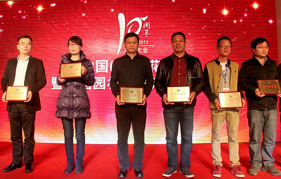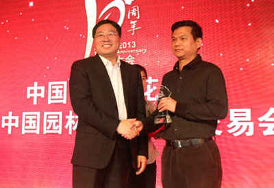 大会揭晓并颁发了“突出贡献奖”、“贡献奖”、“最佳合作伙伴奖”、“2013年优秀参展奖”、“2013年产品金奖”等多个奖项,以此表彰一批多年来为中国(萧山)花木节的成功举办做出积极贡献的个人和单位。其中,抖圈绿化工程有限公司荣获“最佳合作伙伴奖”、“2013年优秀参展奖”,参展的产品“红宝石”紫薇和“火炼金丹”桂花荣获“2013年优秀产品奖”,总经理张炎良上台领取了奖牌。