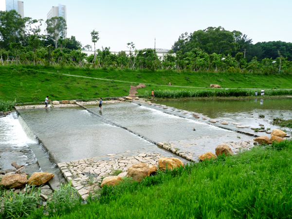 该工程完工后,浅而宽阔的河道,清亮透彻的河水,驳岸上青青的草地,色彩艳丽的花卉,极具创意的硬质小景,小巧的叠水平台……如画的生态美景和多彩的滨河景观让人备感身以愉悦,成为深圳市民散步休闲的好去处。