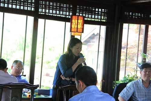 在画境·青山湖花园一间中式木楼中,聚集着近30位江干区政府、发改局和各行各业的优秀企业家。