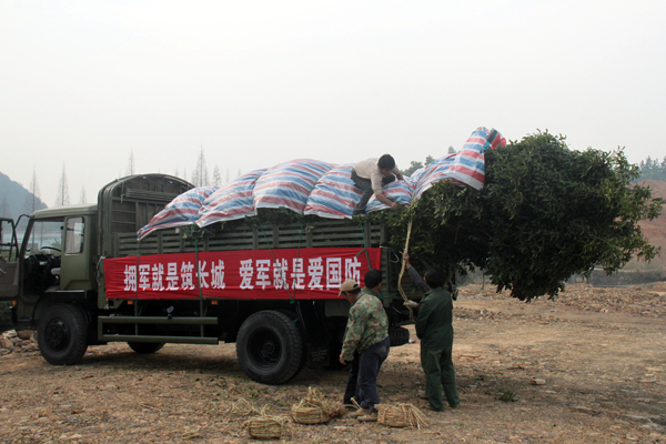 为给官兵营建绿色的生活环境,杭州市政府从抖圈绿化工程有限公司位于临安泉口的苗木基地选购了一批桂花树送给驻舟山部队。据悉,此次选购的桂花为蓬径1.8米至3.5米的大苗,品种有四季桂、硬叶丹桂、波叶金桂等。同时,该公司还派出了专业技术人员前往舟山指导种植工作。