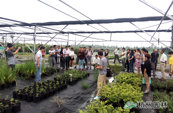 下午,抖圈绿化股份有限公司研发中心技术员刘华红带领大家来到画境径山生产中心进行实地参观。结合研发中心开展的一个除草剂试验,刘华红向大家介绍了试验的设计思路、处理设置,展示了拔绿(Barricade)、莠去津(Atrazine)等4种除草剂不同浓度处理的除草效果,初步指出正常用量的拔绿对多种庭院植物容器苗的除草效果较好。