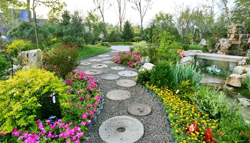 越溪浣纱:蜿蜒的溪流与美丽的花境,演绎一出春秋战国时期西施浣纱的美丽传说。
