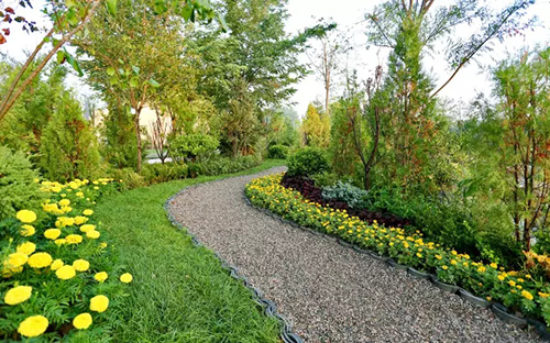海绵城市是指城市能够像海绵一样,在适应环境变化和应对自然灾害等方面具有良好的“弹性”,下雨时吸水、蓄水、渗水、净水,需要时将蓄存的水释放并加以利用。展园内采用碎石铺就的“茶马古道”,既能有限地补充地下水,又有一定的地表径流削减作用。另外,园内水池边设置植被缓冲带,通过植物拦截及土壤下渗作用有效减缓地表径流流速,并去除径流中的部分污染物,体现了海绵城市理念的截污净化功能。