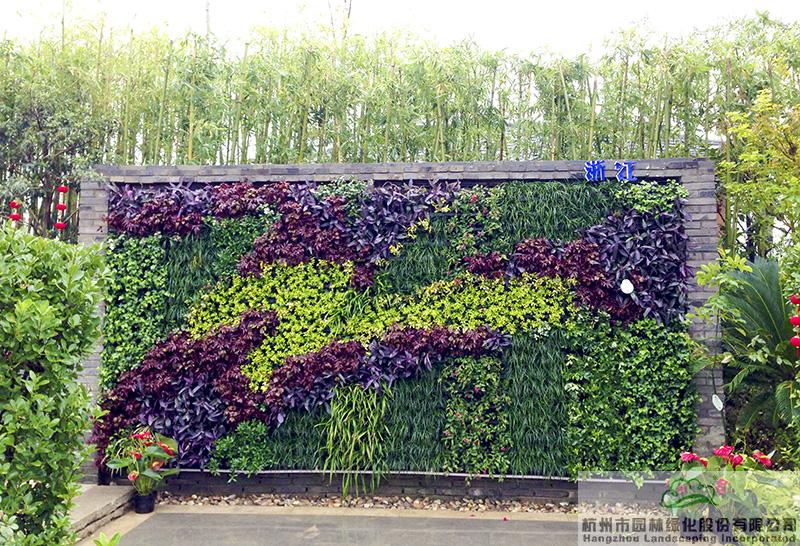 浙江省的新型垂直绿墙技术在国内处于领先水平。位于展园富春山居负一层门口右侧的垂直绿墙,选用小叶栀子、龟甲冬青、黄金海岸线柏、火焰南天竹、哈伯南天竹、常春藤、吊兰等植物,以“丝”为笔,用流畅的线条勾勒出浙江丝绸之美、体现浙江丝绸之韵,描绘出一幅柔软飘逸的浙江丝绸之画。
