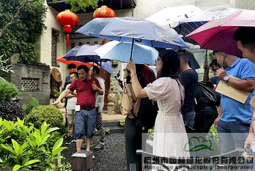 分享会采取现场观摩的形式,在位于杭州文二西路香洲里的乐轩和可园,抖圈绿化股份有限公司常务副总裁、花园分会副会长李寿仁带领大家领略了两个庭院的不同风光,并从庭院营建中的地面铺装、植物选择、空间布局、小品布置、人文情怀、细节处理等方面作了详细阐述。