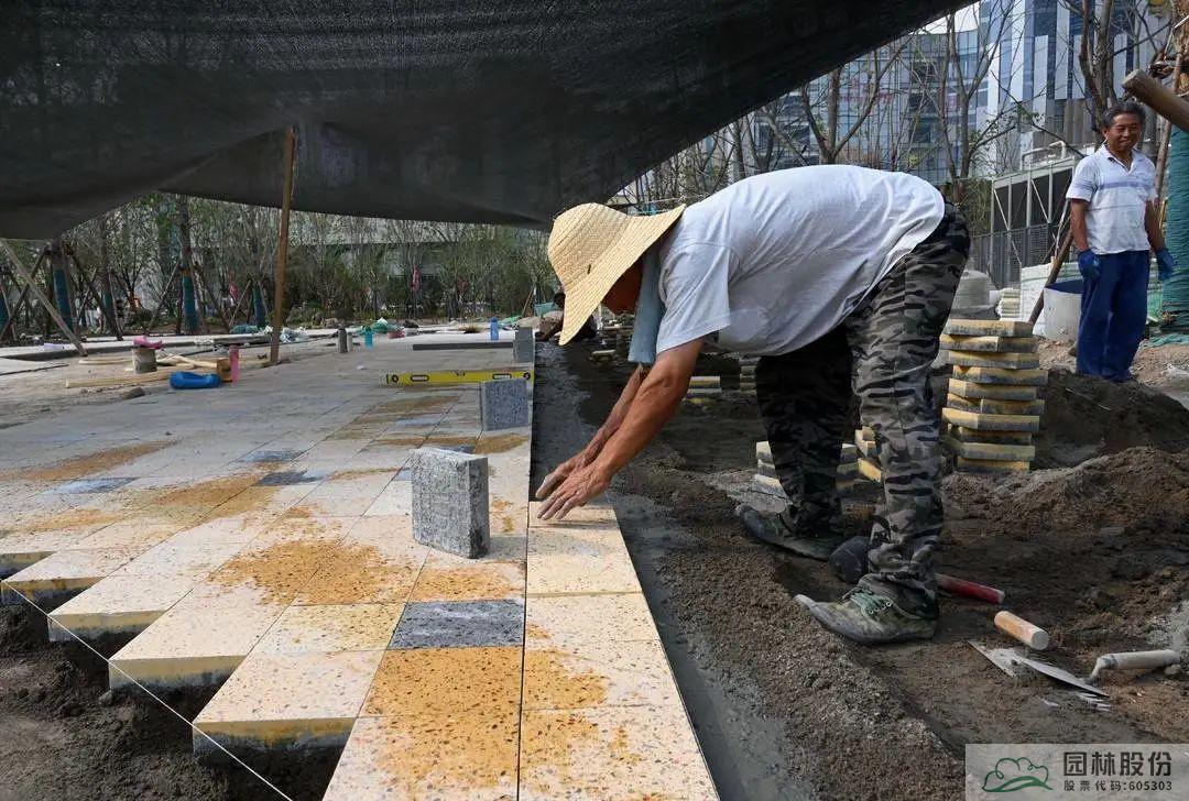 园建部分,路面铺设已经完成70%,给排水及亮化监控、公共卫生间均已完成90%。