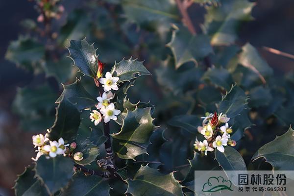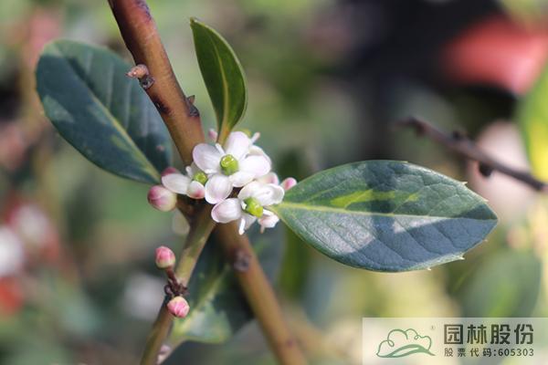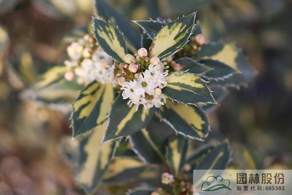 其中,彩叶冬青更是其中的佼佼者。除了果实可供观赏外,它们还拥有黄色叶、蓝绿色叶和银边叶等彩色叶片。叶形变异也是相当丰富,具四角状,椭圆形,倒卵形等多种形状;有些品种具有刺状叶片,而有些则是光滑的叶片;有些品种叶缘还具有波浪状的起伏。四季景观分明,在春季,它们的茎腋间会簇生出一朵朵清新可爱的小花;而在当年生的枝条上,则会抽出亮丽的嫩叶。到了秋季,随着气温的骤降,叶色会变得更加地明艳;冬季的时候,在雌性的植株枝条上,则会挂满累累的果实。这些不同的形态和色彩变化,使得彩叶冬青在不同的时间和空间中呈现出不同的姿态、色彩与意境,从而提升了冬青品种的观赏价值,成为园林景观中重要的观叶植物。