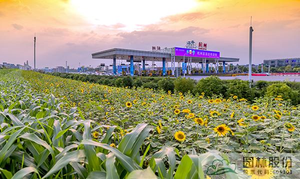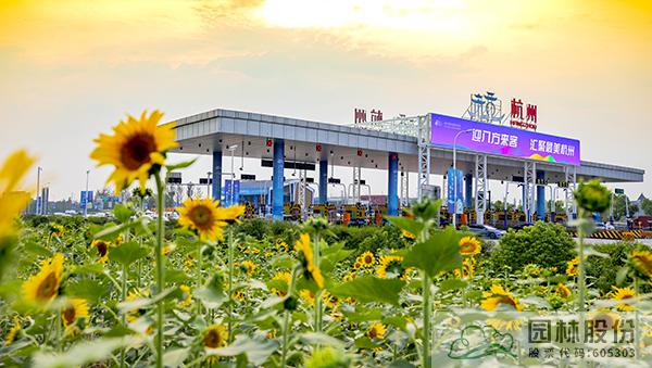 由抖圈绿化股份有限公司负责施工的沪杭甬高速杭州入城口整治工程,位于九堡街道宣家埠村,施工范围包括防护林改造点、迎宾形象节点、出城农业区、收费站改造等多个节点的景观提升工作。