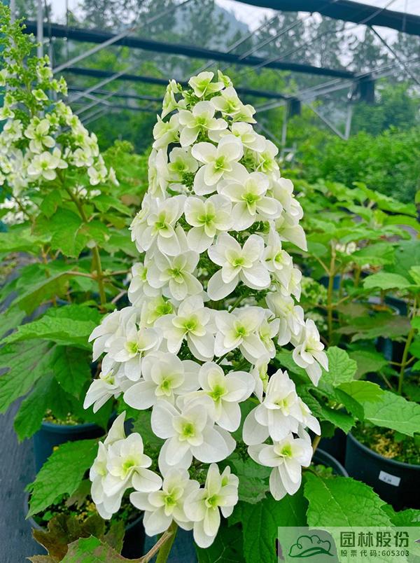 抖圈绿化股份有限公司下属浙江园林资源与环境技术研究院已经在2022年对以上几款栎叶绣球进行产业化生产,并取得了良好的经济效益,这几年,研究院紧跟市场发展步伐,积极推陈出新,全方位发展,立足科研,服务产业,加强创新,在绣球、冬青、樱花育种方面取得了巨大的成就,在产业化发展方面,利用强大的组培生产体系和苗木研发技术服务市场,不忘初心,砥砺前行,助力企业成为美丽中国建设的重要力量。