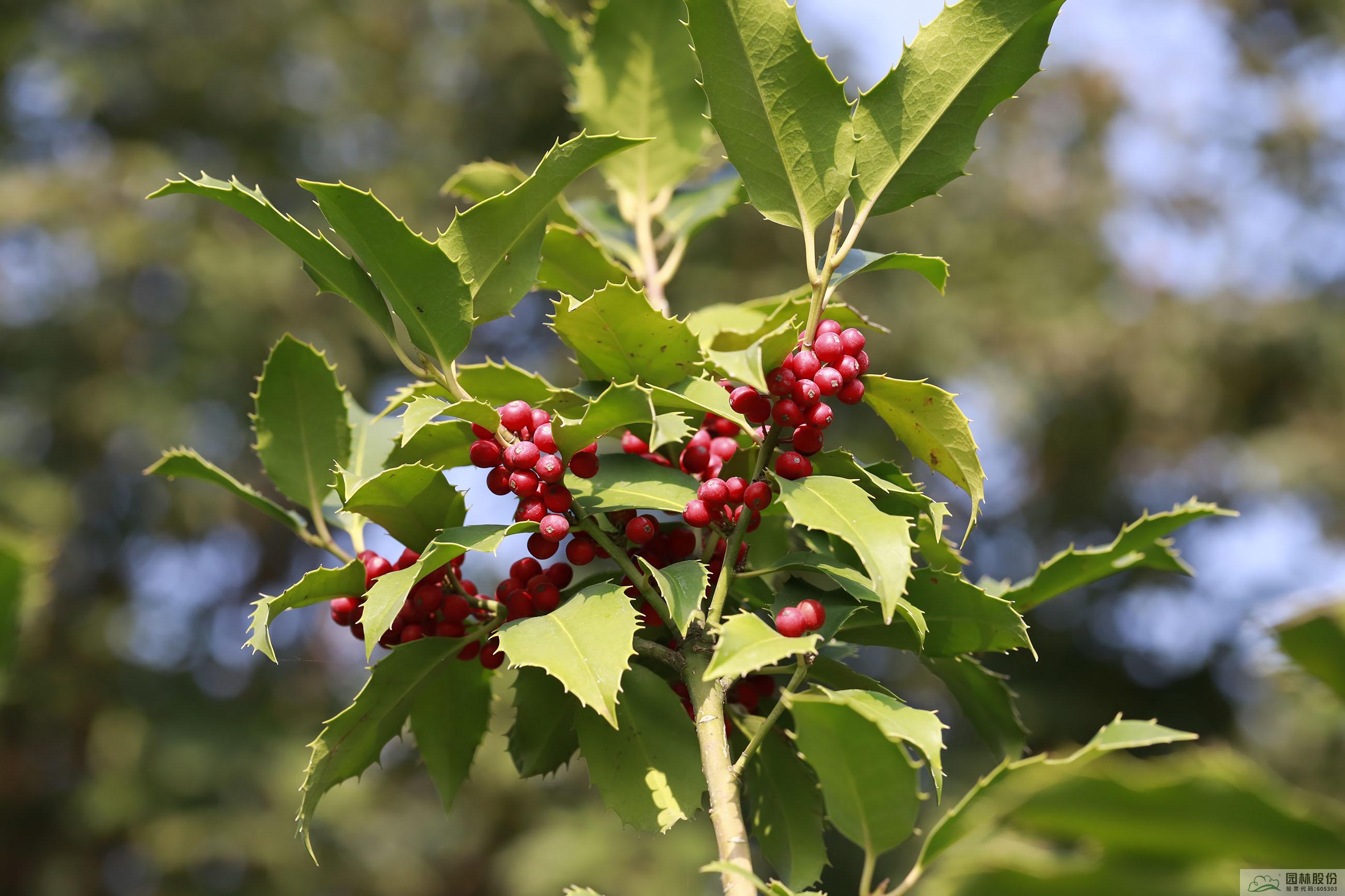 本品种为品种阿拉斯加Ilex aquifolium 'Alaska'种子繁育的实生苗中选育而得。常绿乔木,雌株,植株圆锥状,幼枝褐红色。幼叶红褐色,老叶绿色。叶片厚革质,矩圆形,叶缘波状起伏,密布中等深度的小刺齿。花期4月中上旬,雌花黄绿色。果红色,挂果期为10中下旬至11月中上旬。
