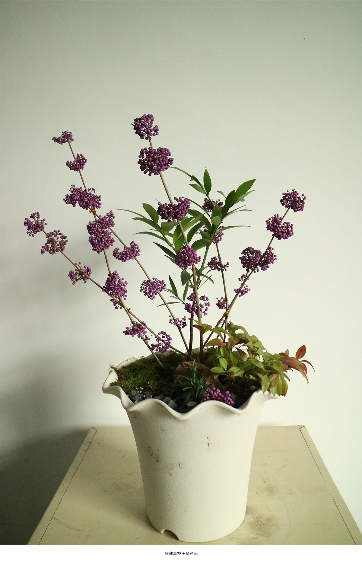 以容器育苗技术为基础,结合株型控制技术、高空压条技术和花期调控技术,对上百种园林植物进行深度开发,实现中大型植物小型化和多季开花的目的,有效提高了植物产品的附加值。 (1)容器育苗
